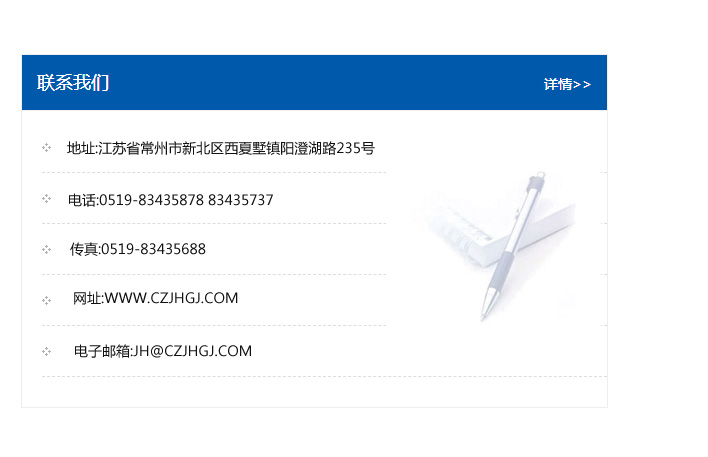 傳真:0519-83435688    郵編:213135    網址:WWW.czjhgj_com.wxyft.com    電子郵箱:JH@czjhgj_com.wxyft.com